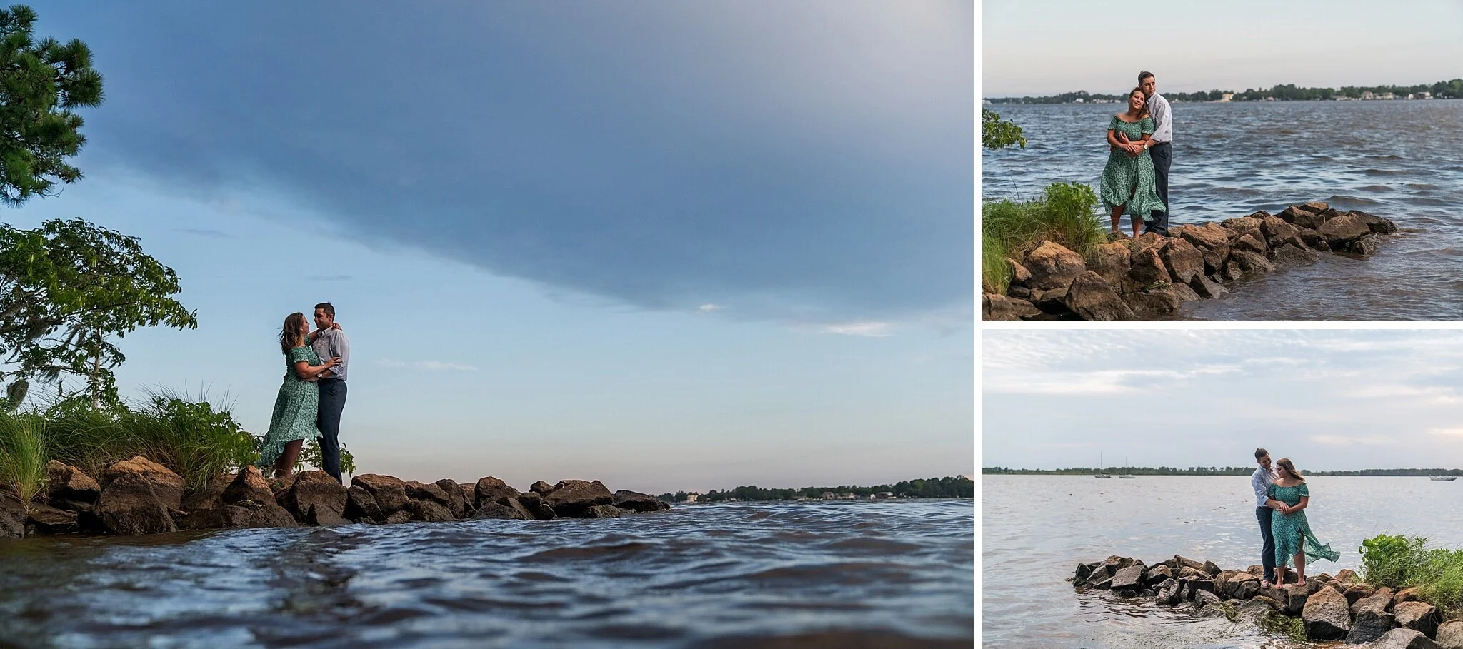Today, on the first Thursday of the new year, I’m back with another Throwback Thursday that I’m so excited to share with the world. Although my ultimate goal is to create an organized life where I’m always “caught up” on blogging, there’s something beautiful about revisiting our images several months after they were taken. Tonight’s blog post features Francis and Katherine in their Washington, NC engagement session. They had the most beautiful, sunshine-filled afternoon to explore this quaint little river town that is an absolute favorite photo spot for us. Francis and Katherine are getting married next May and their love for each other, and Francis’s daughter, Julia, is so obvious. We always say that a laugh brings out the most natural smiles in photos. Julia kept them laughing during their group shots, but Francis came prepared with a cheat sheet of movie and TV quotes that he knew would make Katherine laugh. How sweet! We hope you guys will enjoy some of our favorite shots from their session. We’re hoping for just as much laughter, joy, and sunshine for their May wedding!